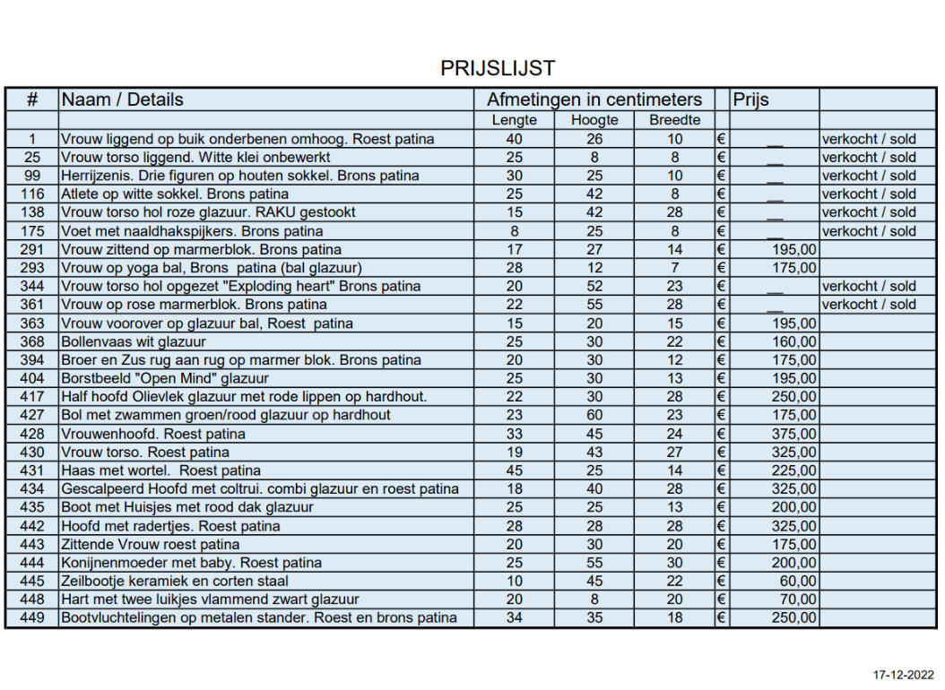 Zoals je kunt zien is deze prijslijst gedateerd op 17 december 2022.